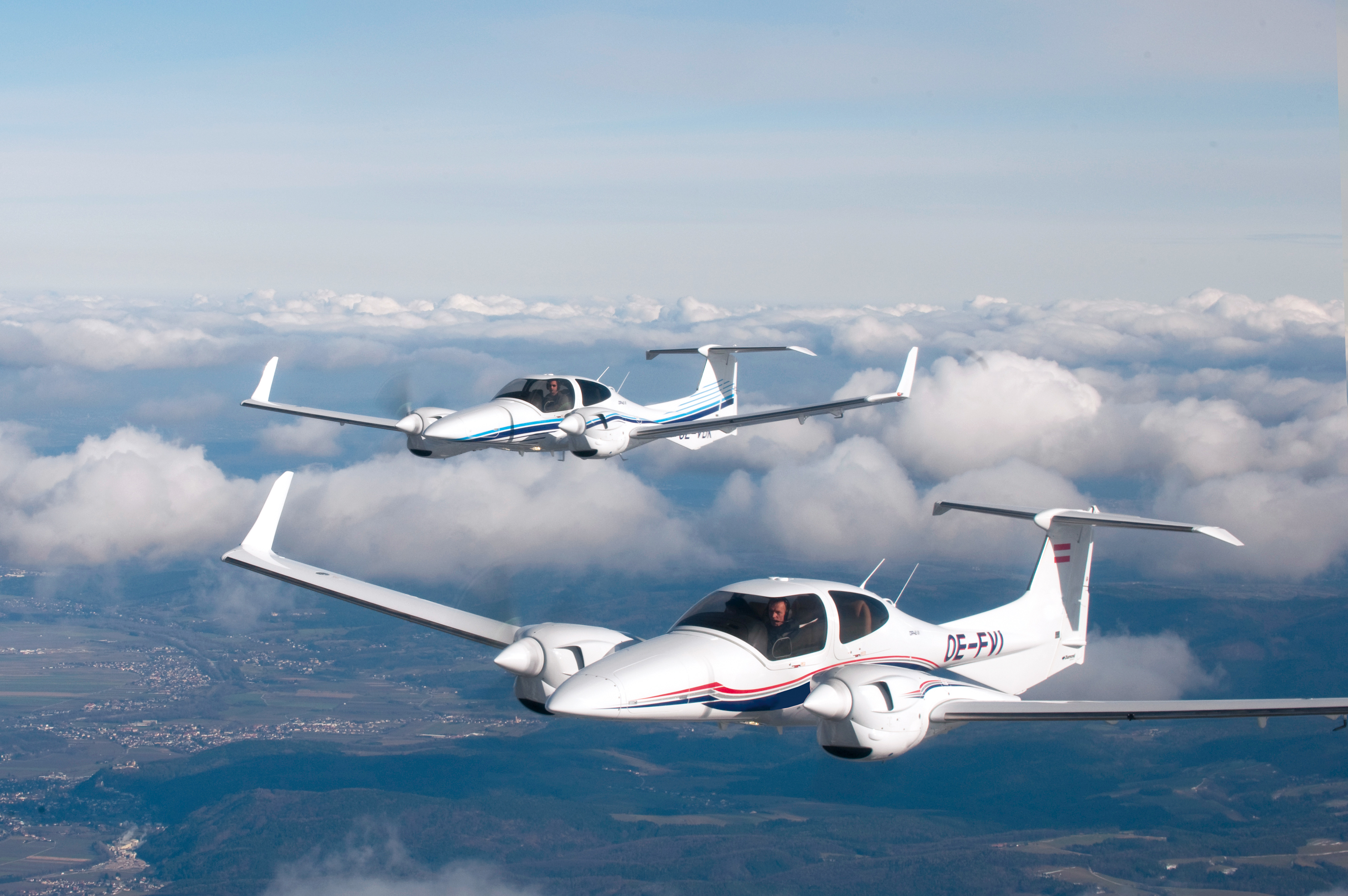 8月28日,中電科蕪湖制造有限公司生產(chǎn)的首架DA42飛機(jī)下線暨PC頒證儀式在蕪湖航空產(chǎn)業(yè)園舉行。圖為鉆石DA42飛機(jī)翱翔藍(lán)天。本報(bào)記者 李博 攝 本報(bào)訊 (記者 沈?qū)m石 見習(xí)記者羅…2017-08-30 -